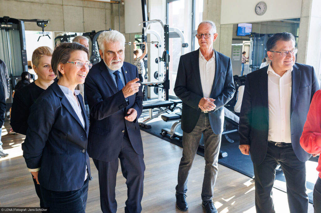 Minister Willingmann betonte: „Mit dem neuen Sportzentrum hat die Hochschule Harz auch beim Klimaschutz Maßstäbe gesetzt. Photovoltaik, Wärmepumpe und einheimische Rohstoffe machen Fitness und Gymnastik auch aus energetischer Sicht nachhaltig. Als erstes beheiztes Nichtwohngebäude in Sachsen-Anhalt erhält das moderne Sportzentrum dafür eine „Grüne Hausnummer“, und das sogar mit dem PLUS-Zusatz. Ein schönes Zeichen für Verantwortungsbewusstsein in Wernigerode. Und das wichtige Signal, gerade auch an öffentlichen Gebäuden energetische Ziele umzusetzen!“